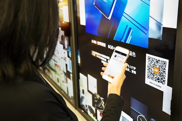 また、画面に表示されるQRコードをスマートフォンでスキャンすると製品を購入できます。製品紹介動画も再生することができ、新しいショッピング体験の店舗空間を提供します。