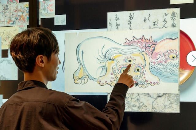 大型タッチモニターには空間いっぱいに次々と妖怪が現れ、前を通過する来館者に反応して興味を惹きます。