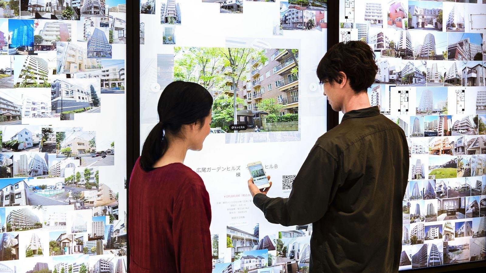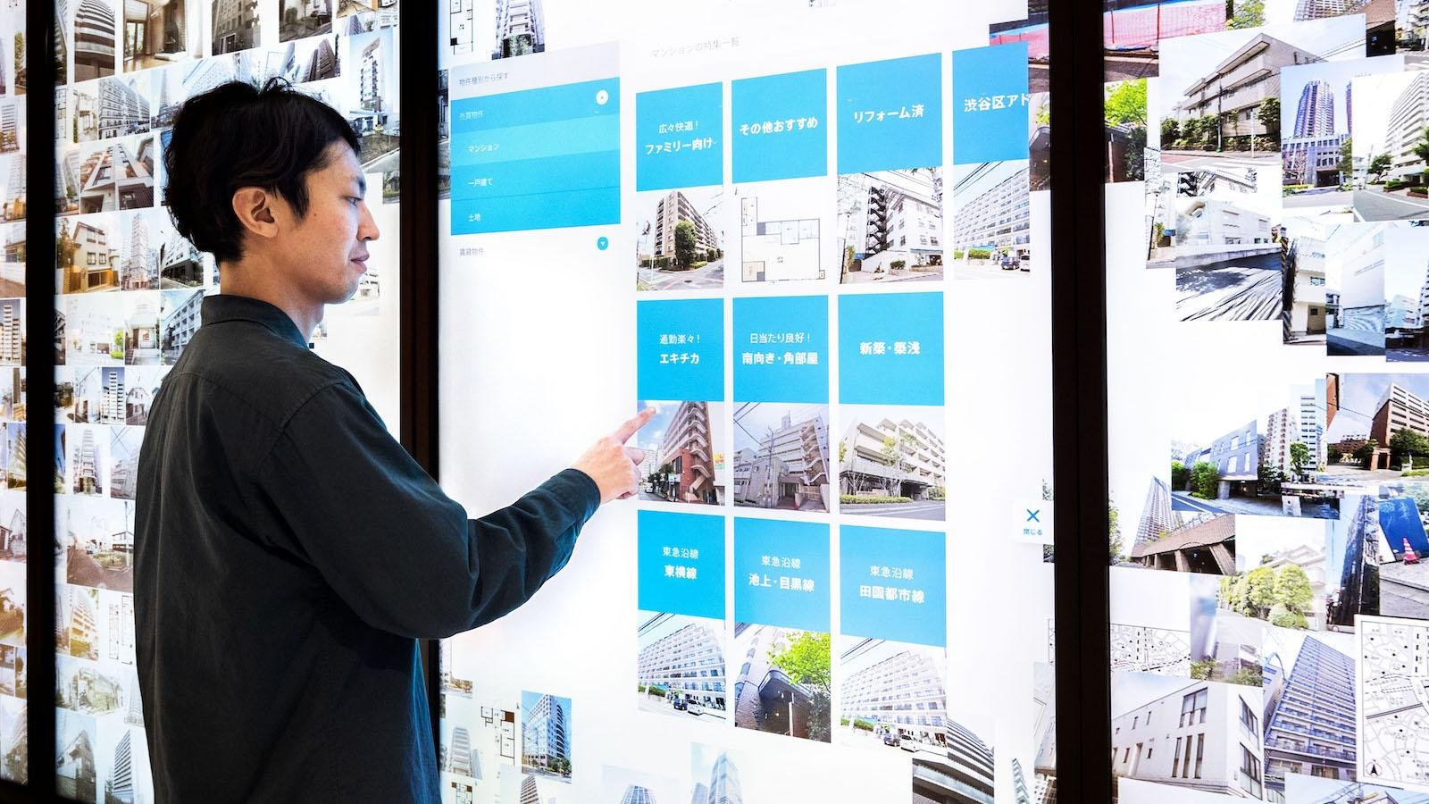 東急プラザ渋谷内の東急リバブル 渋谷センターに、その場でたくさんの物件情報と出会え、渋谷の歴史に触れられるタッチパネルサイネージ「Digital Information Wall(デジタルインフォメーションウォール)」を導入。