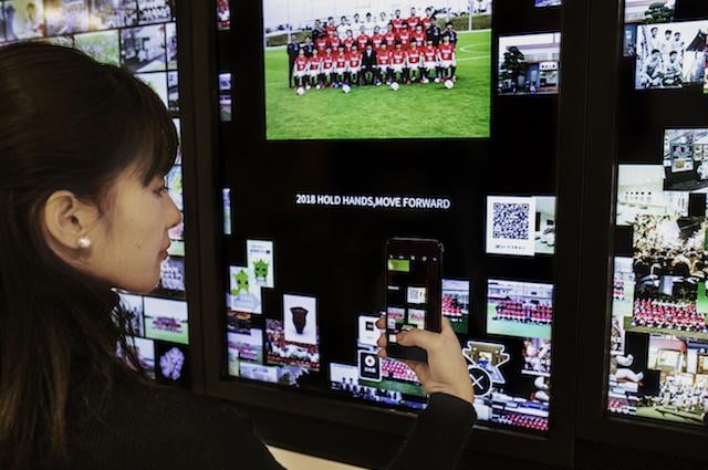 50インチのタッチパネルサイネージ6台には、さいたま市で行われるイベント情報や浦和のサッカーの歴史が表示されます。