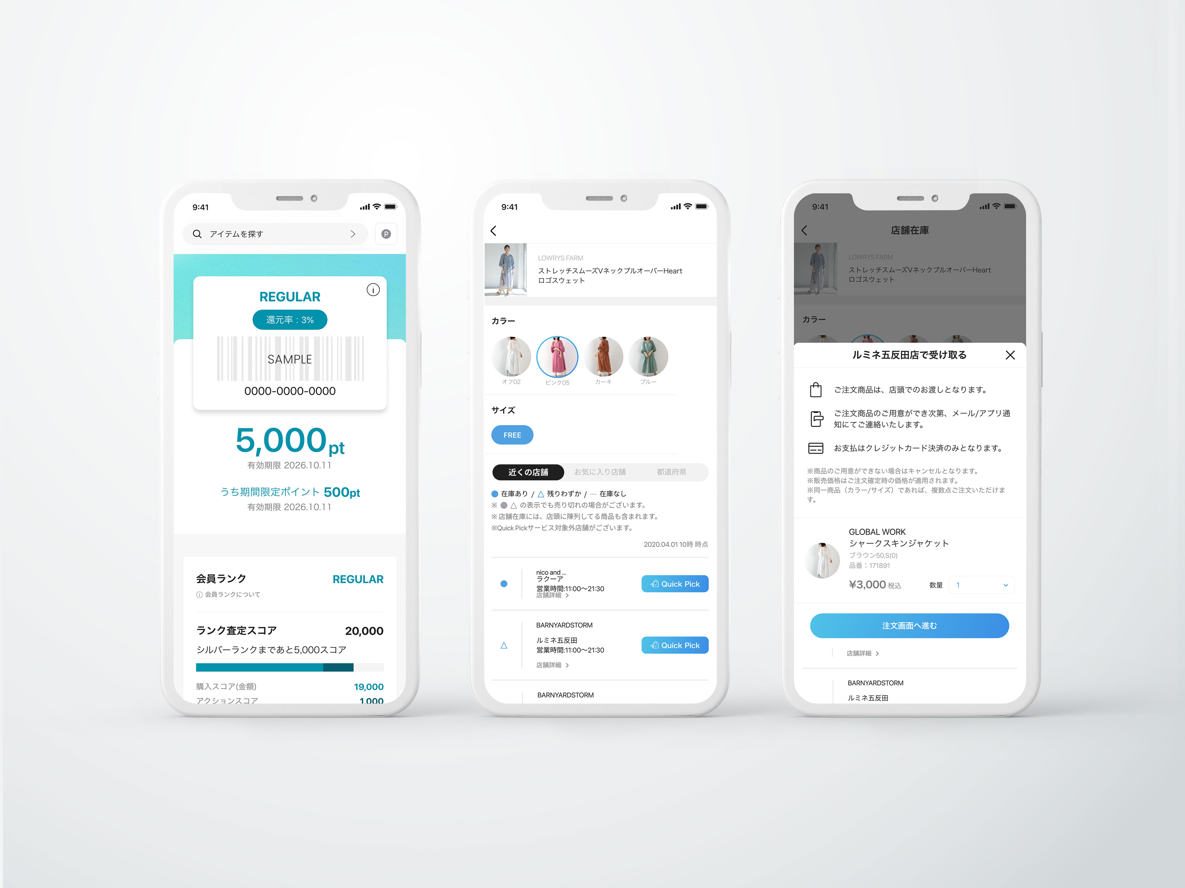 会員カードだけでなく、店舗の在庫表示や試着申込み、アプリで購入し店舗で受け取れるクイックピックなど店舗と連動したサービスを多数提供。アプリ内の購入にとどまらず、実店舗との連動も実現しています。