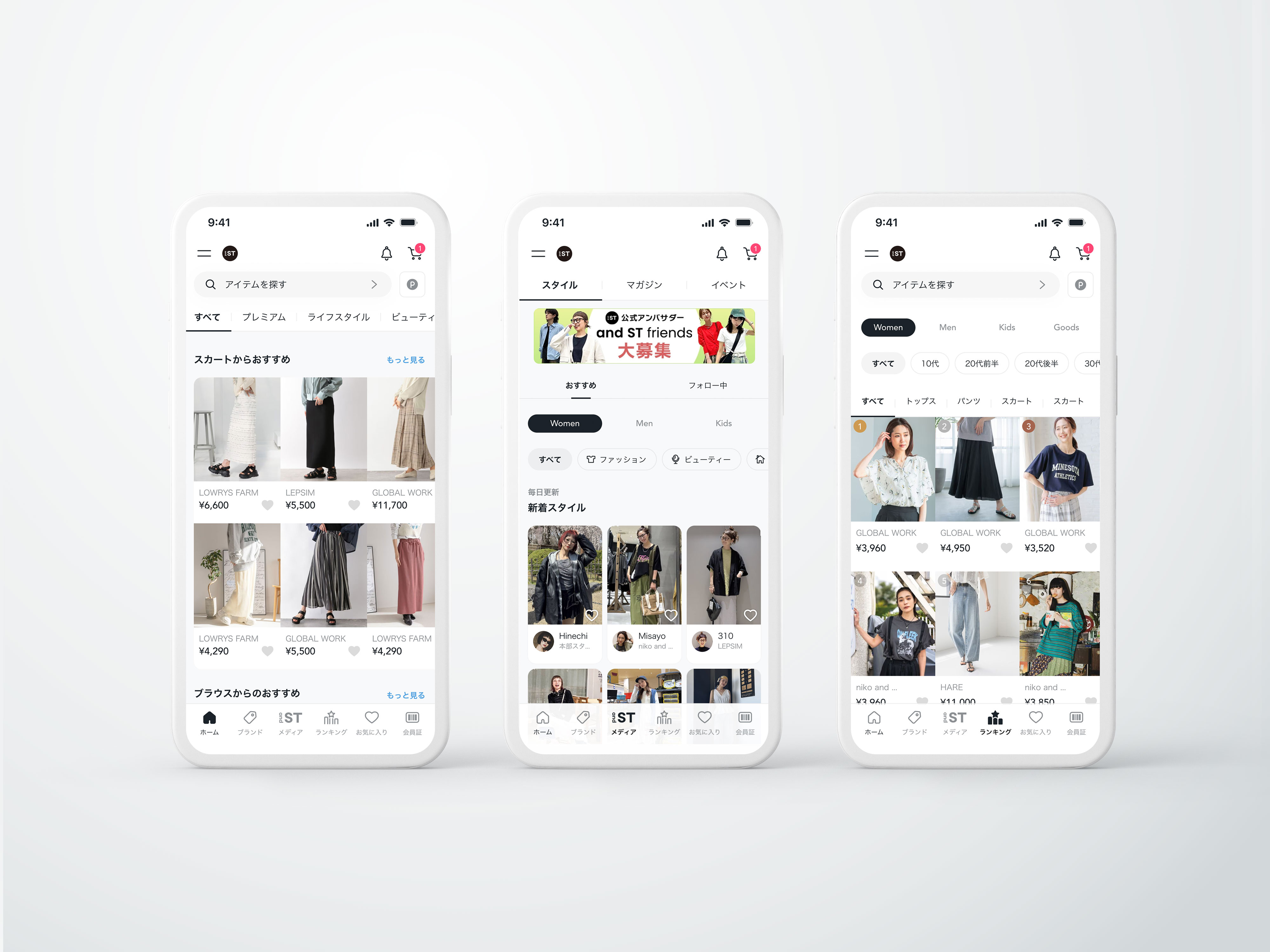 GLOBAL WORK , niko and ... , LOWRYS FARM ... など30ブランド以上が集結したアダストリアグループのファッション通販サイト「and ST(アンドエスティ)」の公式アプリ。