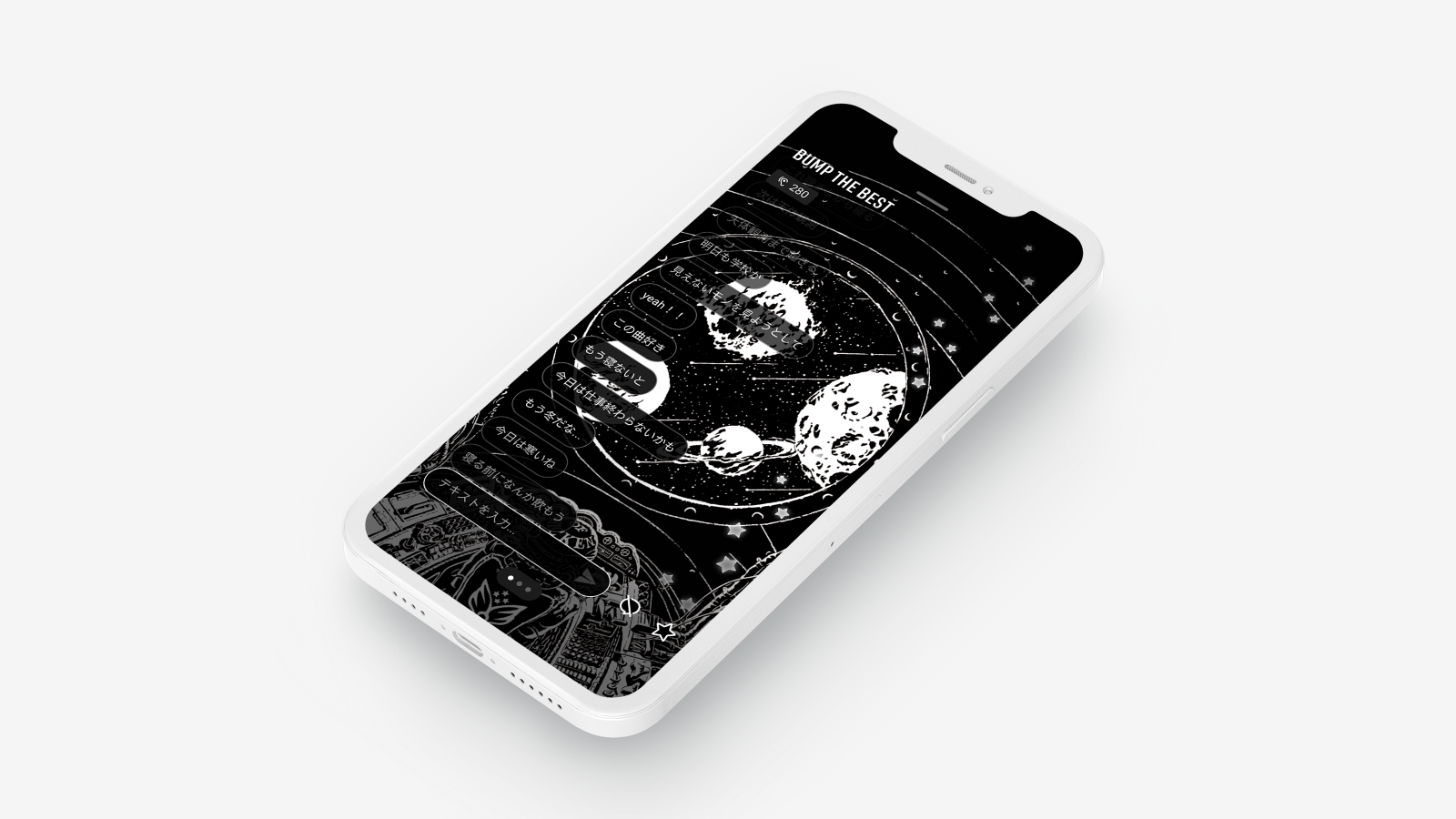これまでリスナー向けの会員制サービスを持たなかったBUMP OF CHICKENにとって、このアプリが「リスナーたちの居場所」となるよう、24時間365日音楽を配信しつづけ、他のリスナーとゆるく繋がることのできる『LIVE MUSIC』機能をはじめ、BUMP OF CHICKENの音楽を軸としたサービスとなっています。