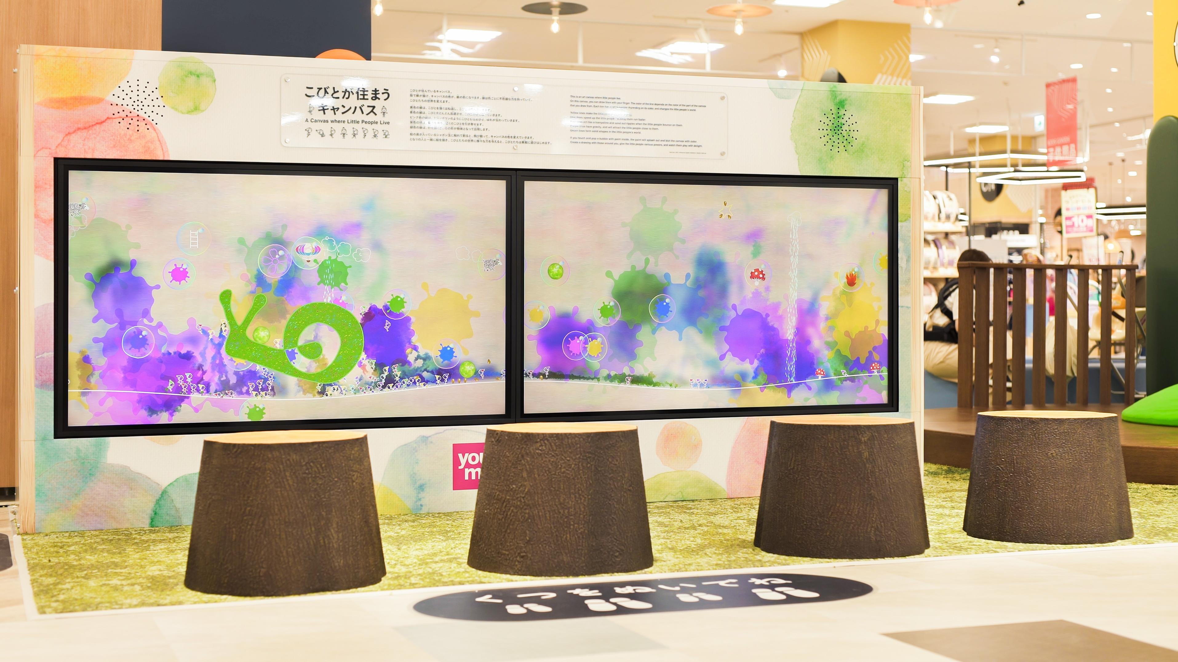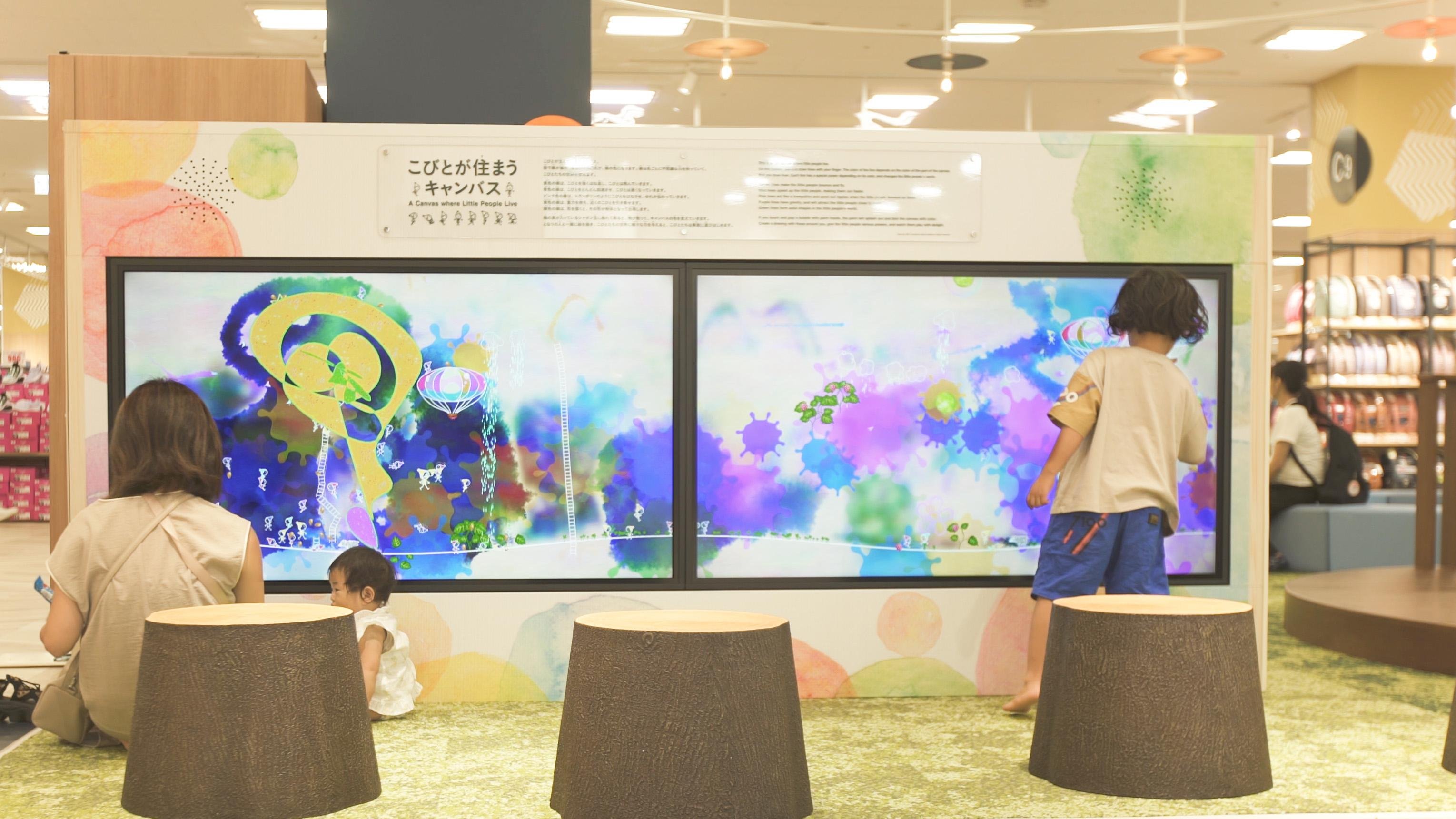 タッチディスプレイを壁に設置するだけで、創造的な遊びの場が創出され、親子で楽しみながら過ごすことのできる場をつくることができます。