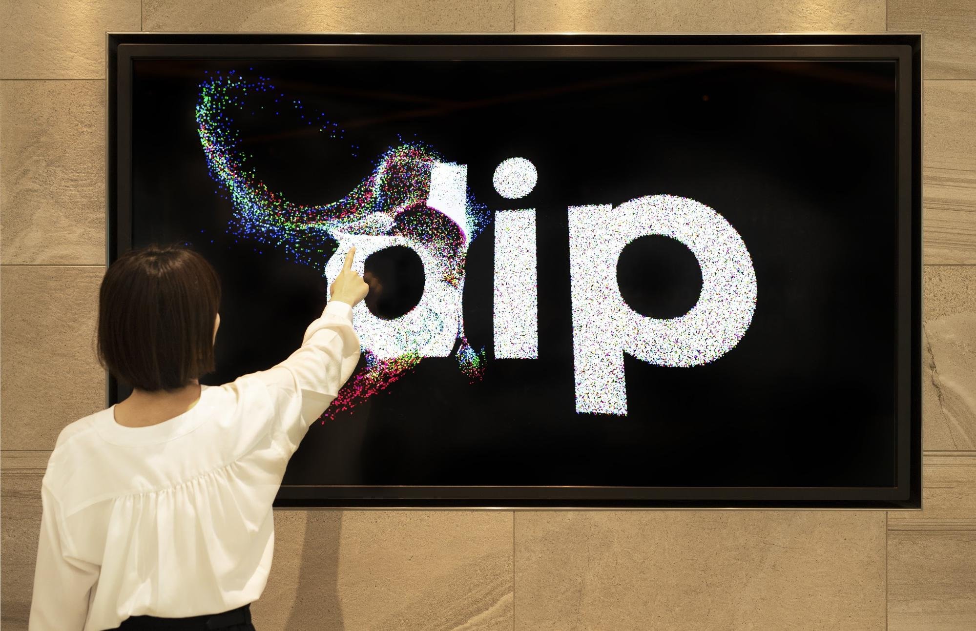 新コーポレートロゴは、Webやアプリ、実空間ではサイネージで、人々に解放されたロゴとして、触れると形や色がインタラクティブに変化します。世界中にあるこのロゴは、ネットワークを通じて繋がっており、世界のどこかで誰かが触れて変化すると、同じように目の前のロゴも変化します。このロゴを通して、世界中の人と一緒に遊ぶことができます。