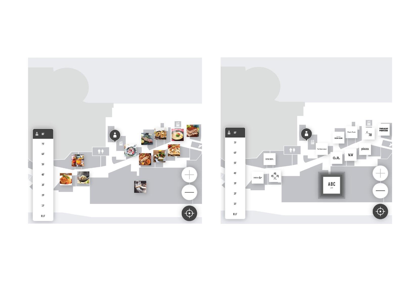 In addition to the floor guide function, which allows customers to find the location of the store based on store/brand information, there is also an option to find stores based solely on a product search.