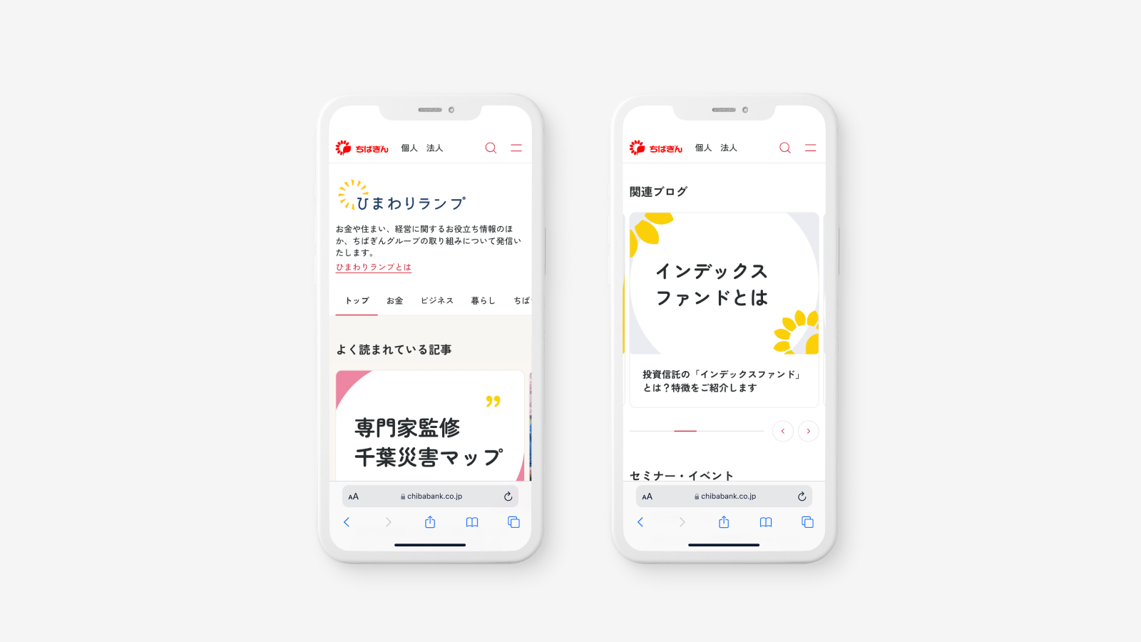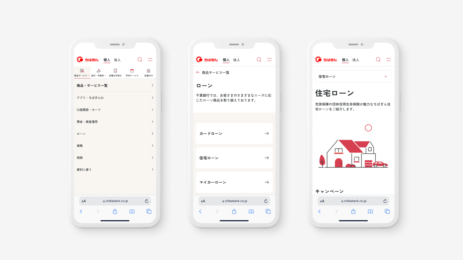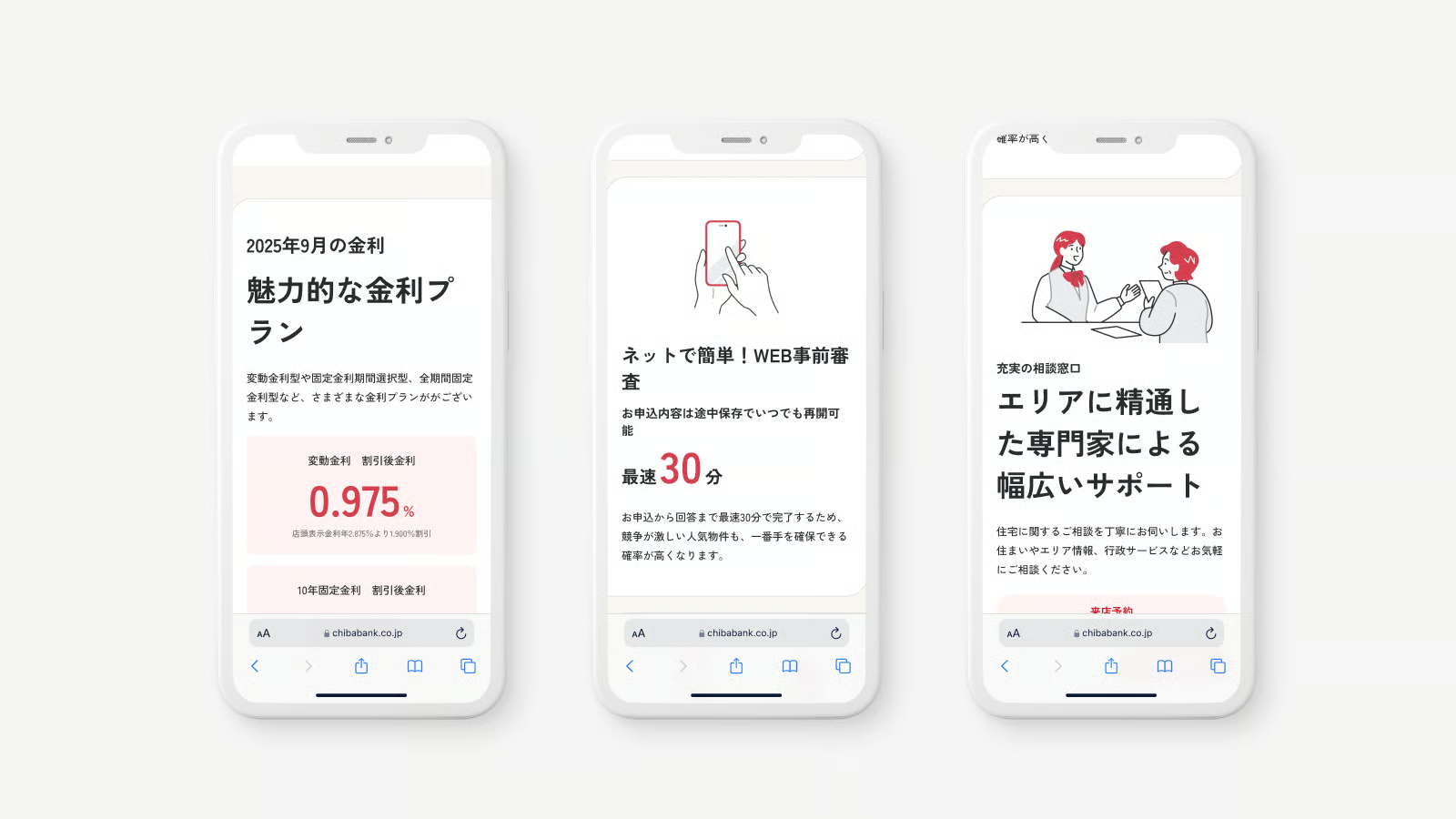 株式会社千葉銀行の千葉銀行公式サイトのリニューアルにおいて、企画、UI/UX設計、デザイン、開発を担当しました。