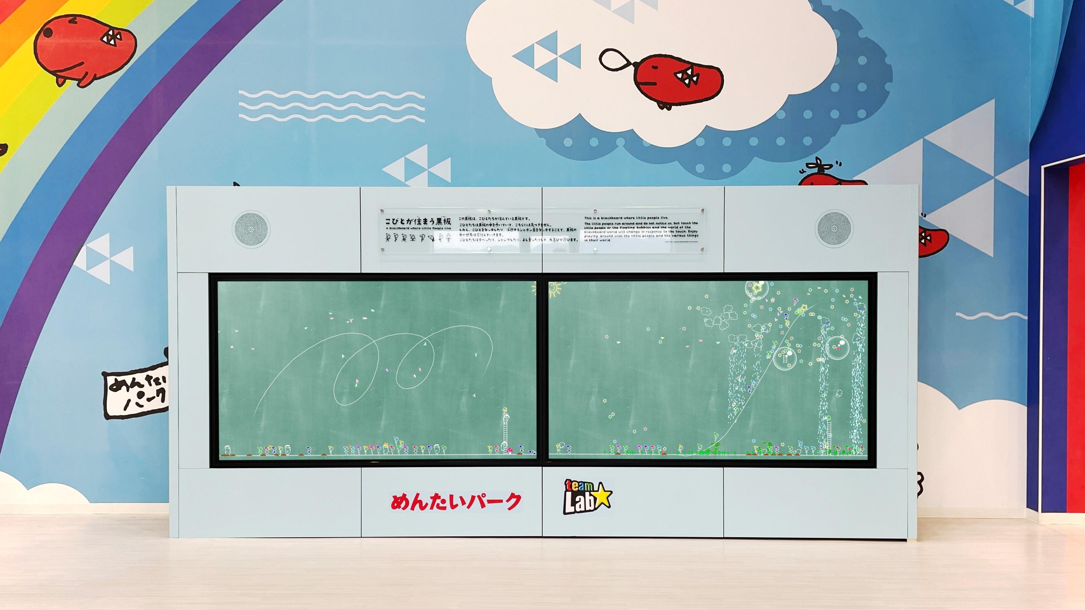 チームラボ、滋賀県野洲市の滋賀県野洲市のめんたいパークびわ湖に、タッチしたり線を引くとインタラクティブに世界が変化する《こびとが住まう黒板》を常設展示。2024年4月12日(金)から。