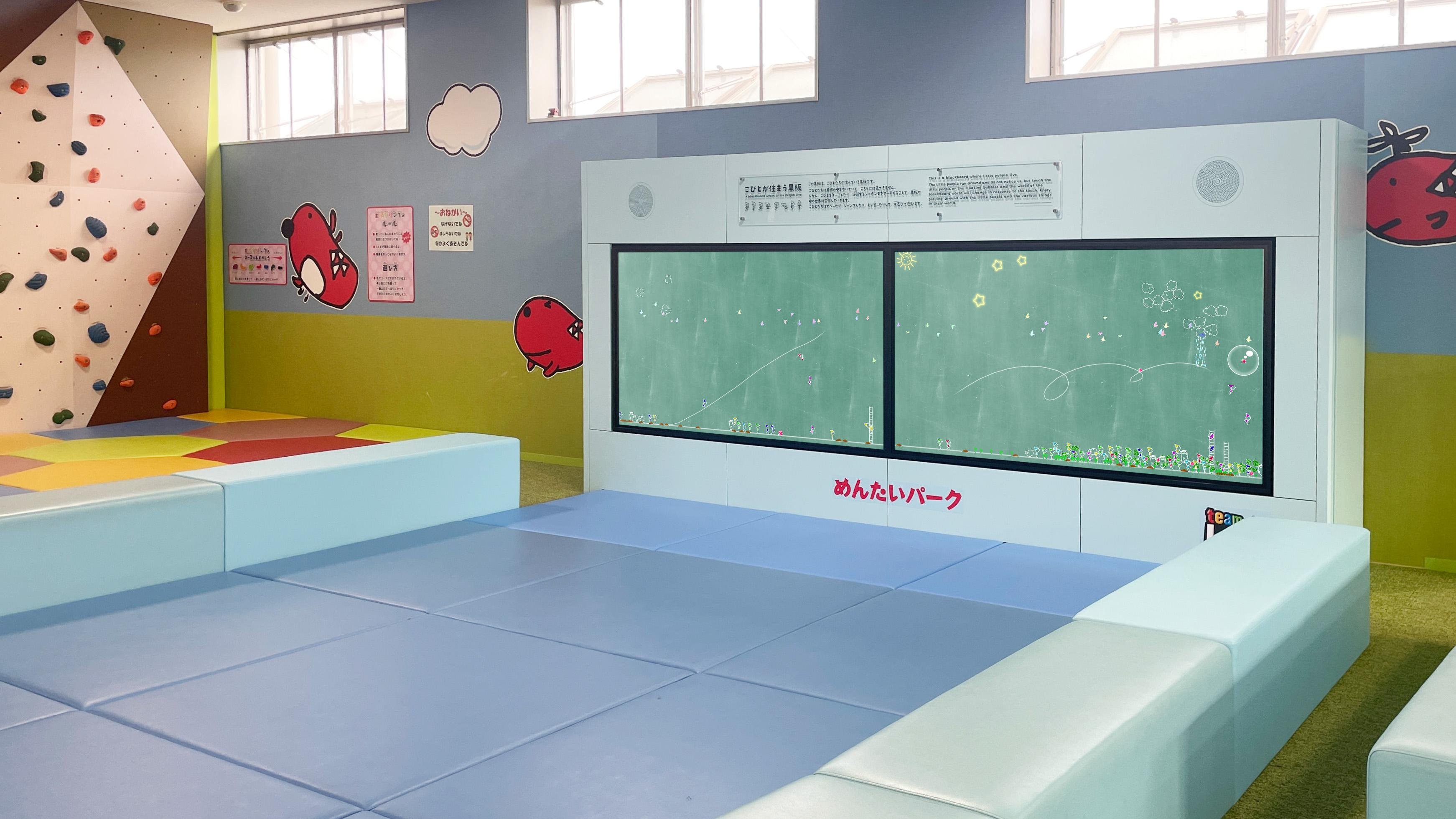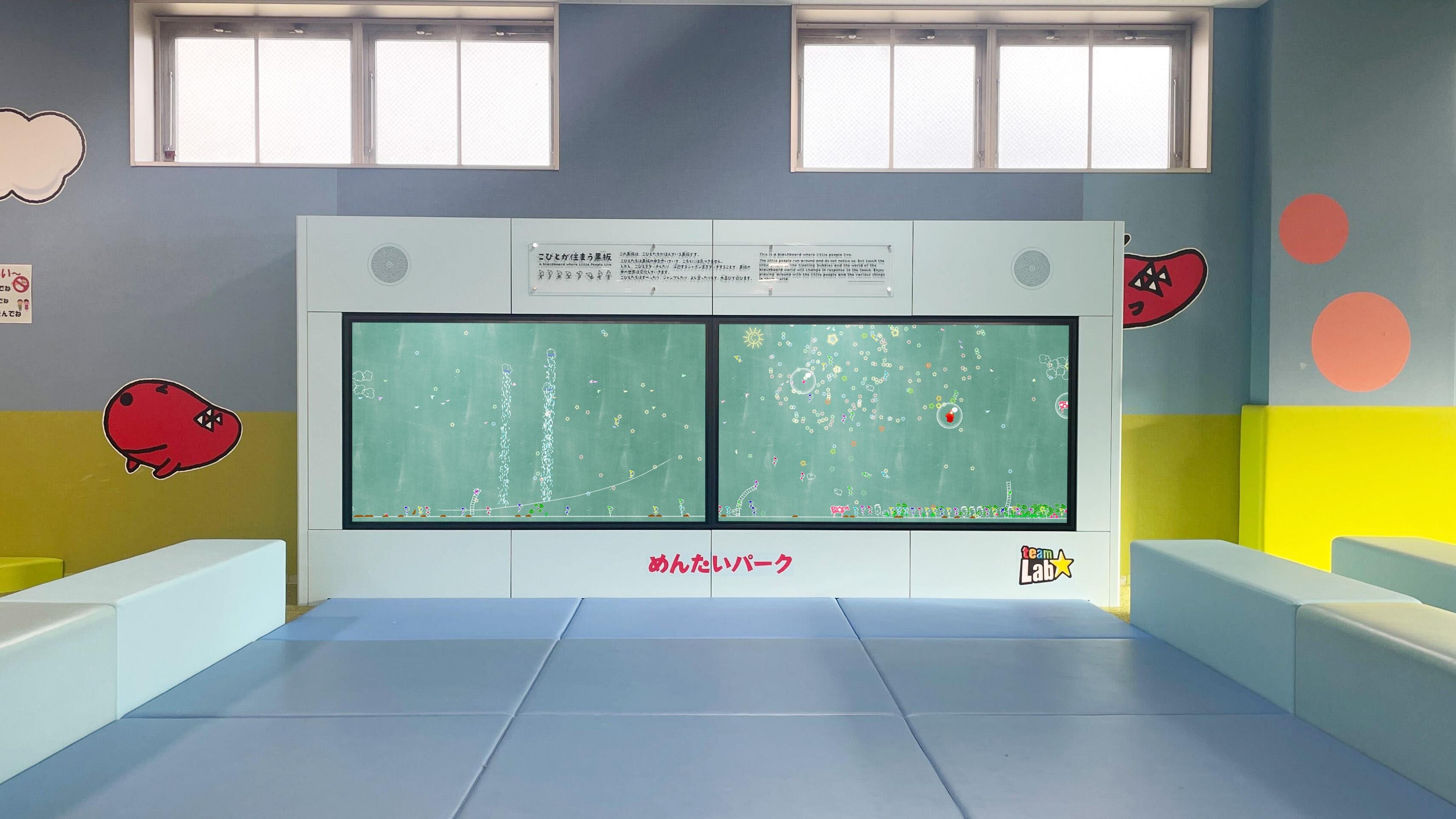 静岡県のめんたいパーク伊豆のタラピヨキッズランドに、タッチしたり線を引くとインタラクティブに世界が変化する《こびとが住まう黒板》を常設展示。2024年5月17日(金)から。