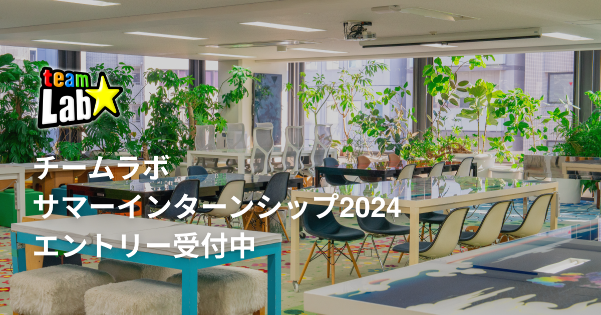 卒業年度を問わず大学院、大学、高専、短大、専門学校に在学中の方を対象とした就業体験型のサマーインターンシップを開催します。このインターンシップでは、チームラボが手掛けるWeb/アプリ開発、アート展示/空間演出など、実際のプロジェクトやインターンシップのために設計した課題を通して、チームラボのものづくりをオフィスで体験することができます。