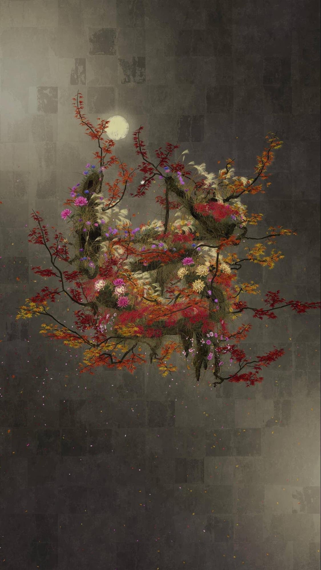 現実世界と同じ時間の流れの中で、1年を通して、咲いていく花々が移り変わっていく。花々は誕生と死を繰り返しながら、増殖していく。増殖しすぎると、一斉に散って死んでいく。