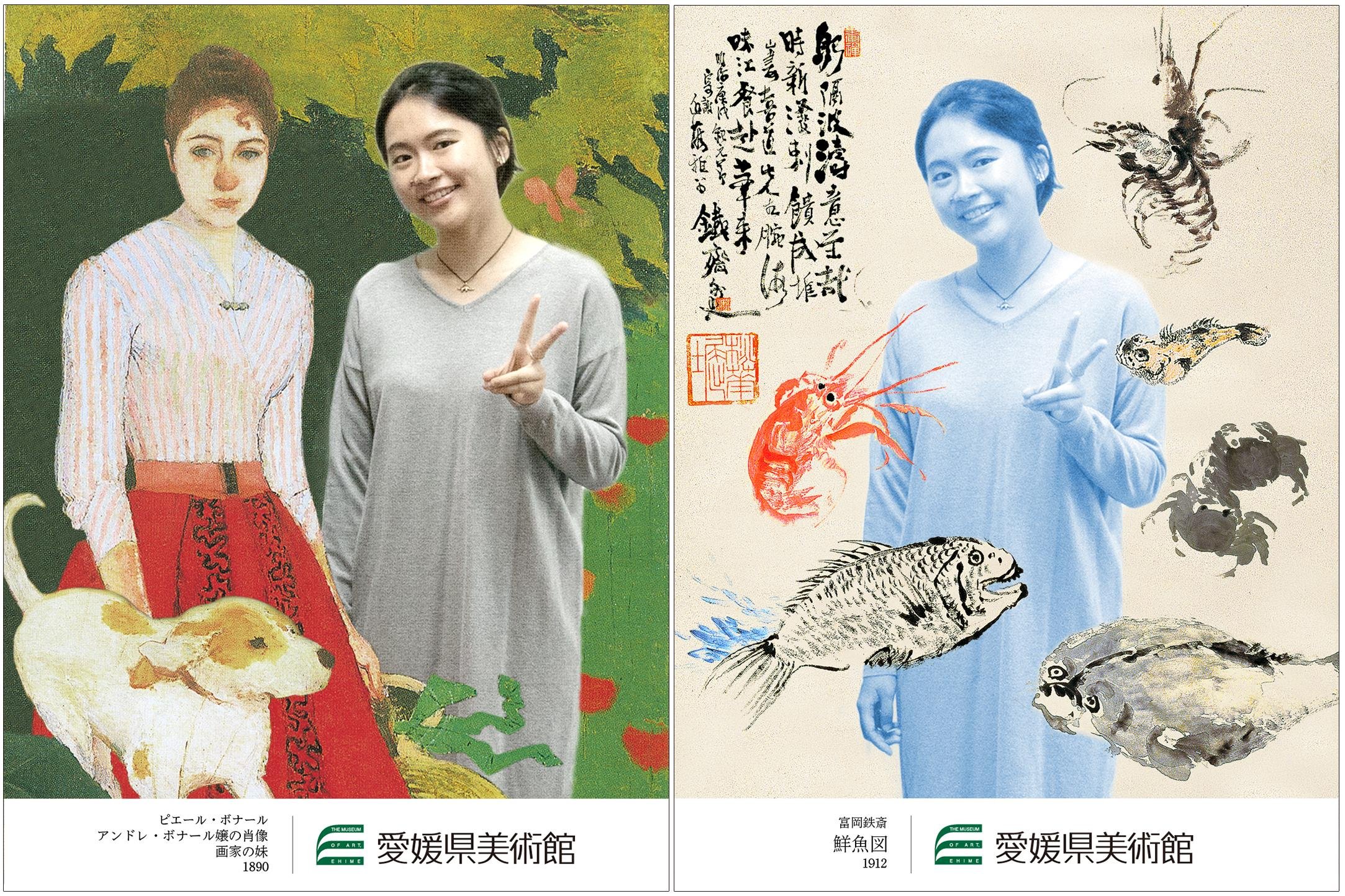 今回新たに追加されるのは、愛媛県美術館のコレクションである、ピエール・ボナール「アンドレ・ボナール嬢の肖像 画家の妹」と富岡鉄斎「鮮魚図」の2作品をテーマにしたフレームです。