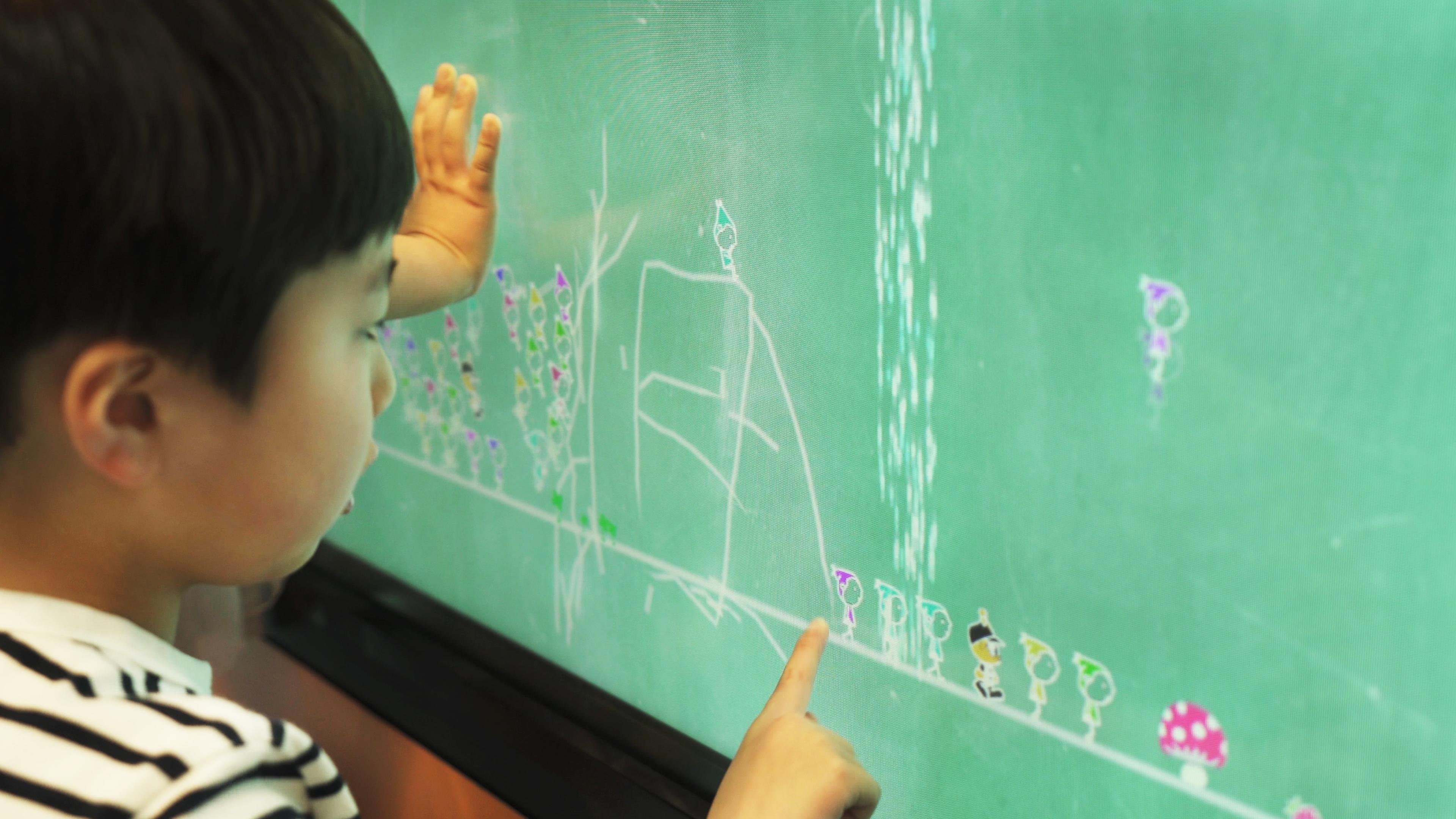 自由なクリエイティビティを高める「共創(共に創る)の場」で、遊びを通して、他者と関わり、黒板の中の世界を創造していきます。そこに、ゲームをクリアするような明確なゴールはありません。ゴールすらも自分たちでみつけ、遊び方を自分たちで創造しながら、そこに居る人たちが共に創り上げていきます。