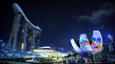 シンガポールの、巨大な空中に浮かぶ船のプールで有名なマリーナベイ・サンズの、蓮の花の建物のアートサイエンス・ミュージアムに、チームラボの「アート」と「未来の遊園地」による、1500平米もの巨大な常設展示、「FUTURE WORLD: WHERE AR...