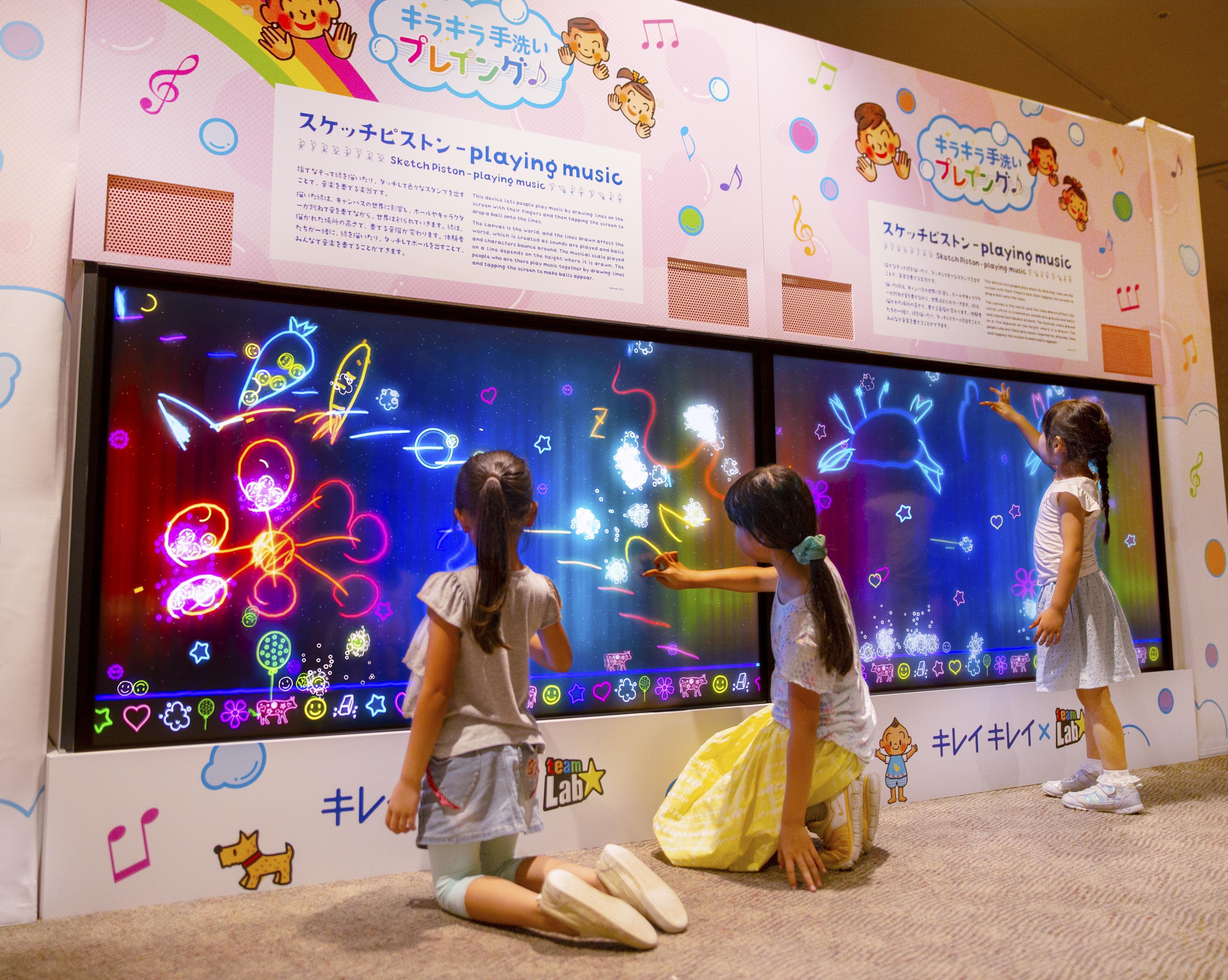 You can set up a playground just by placing a touch panel on the wall. If you use the wall of a café or a food court, children will be captivated by the creative game on a touch panel, and adults can watch them play as they take time to relax, creating a space where people can rest.