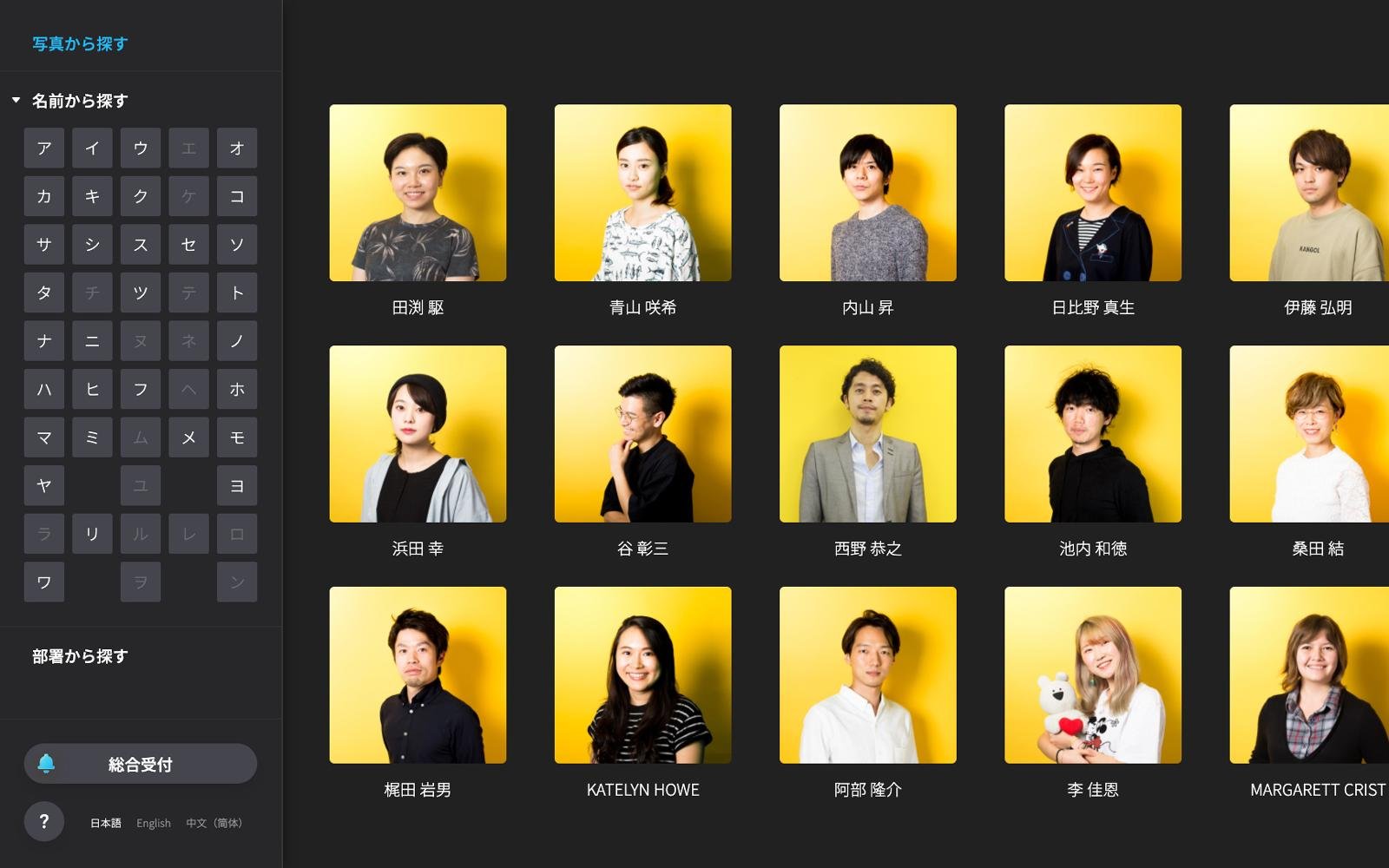担当者のフルネームや部署を覚えていない場合でも、顔写真を見ながら簡単に目的の担当者を見つけることができます。