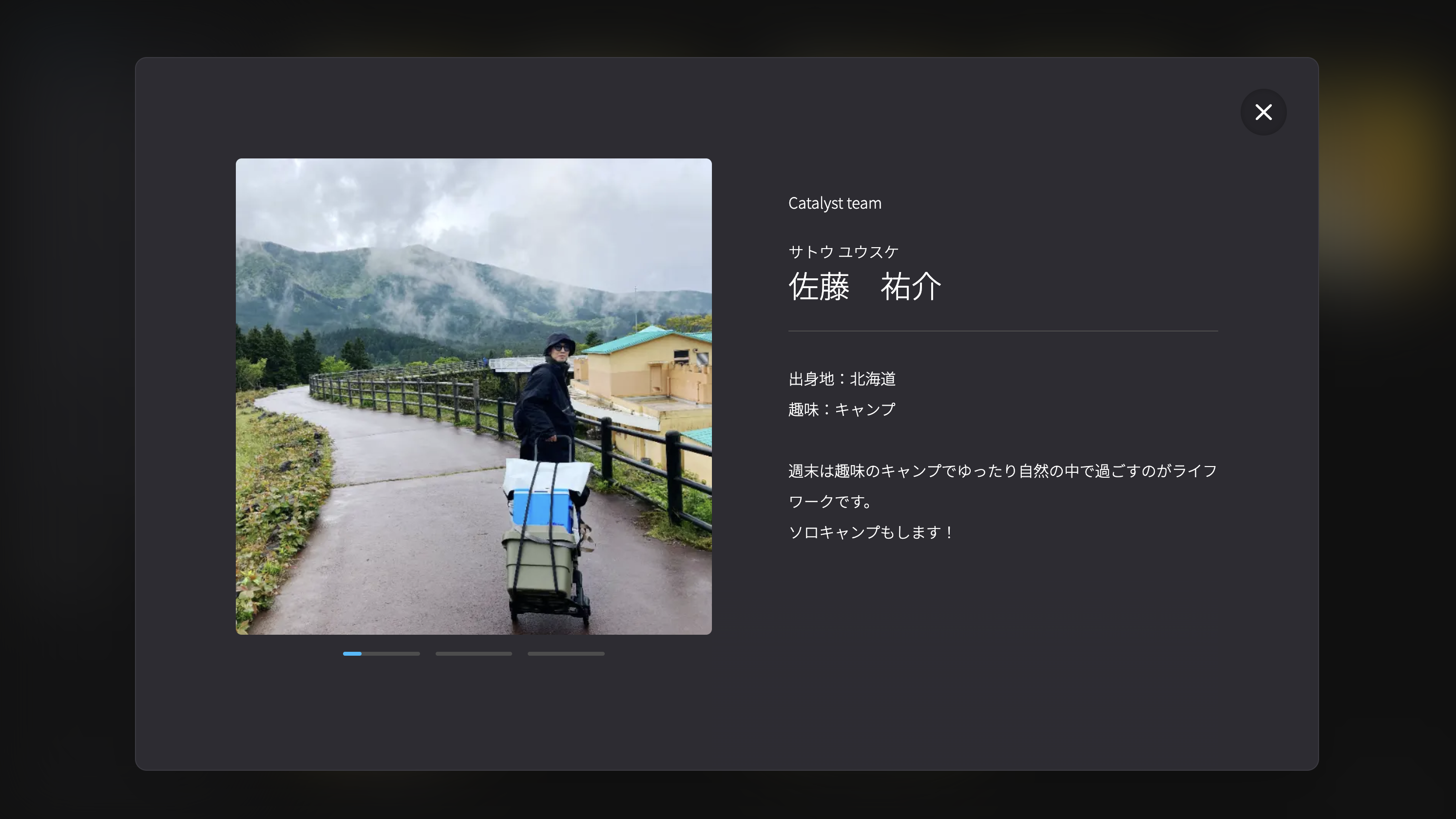 顔写真を選択すると、社員のプロフィール情報が表示されます。