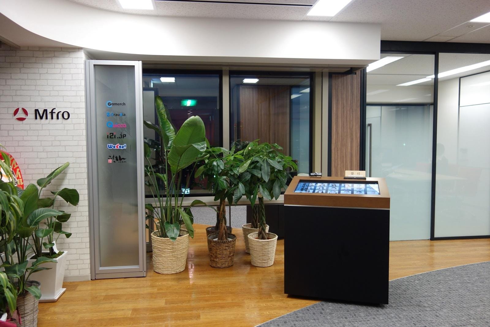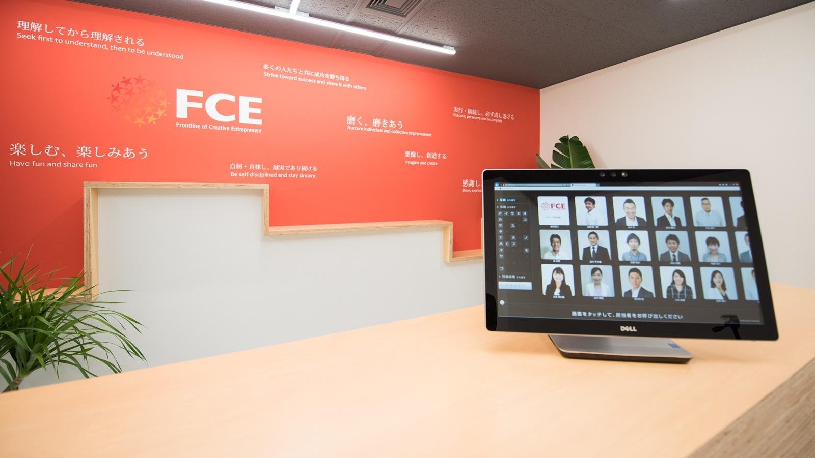 内線電話が置いてあるだけの受付よりも、大画面でインパクトのあるのある受付に変わります。