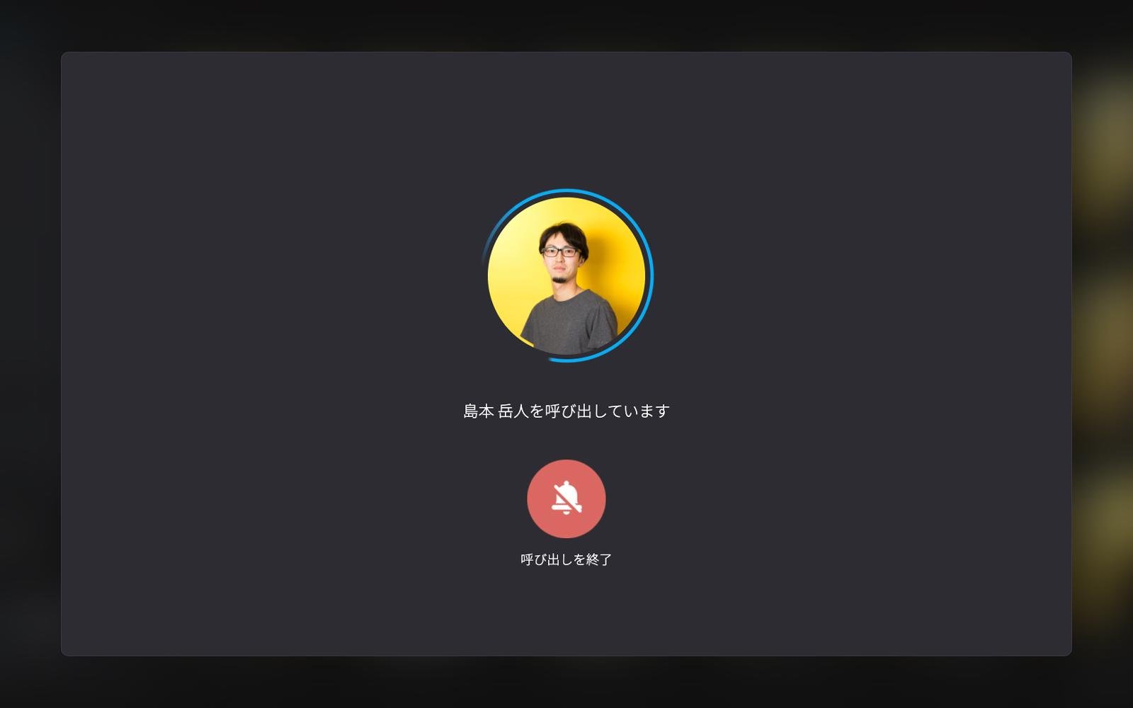 プロフィール表示画面の「呼び出す」ボタンを押して、担当者を呼び出すことができます。