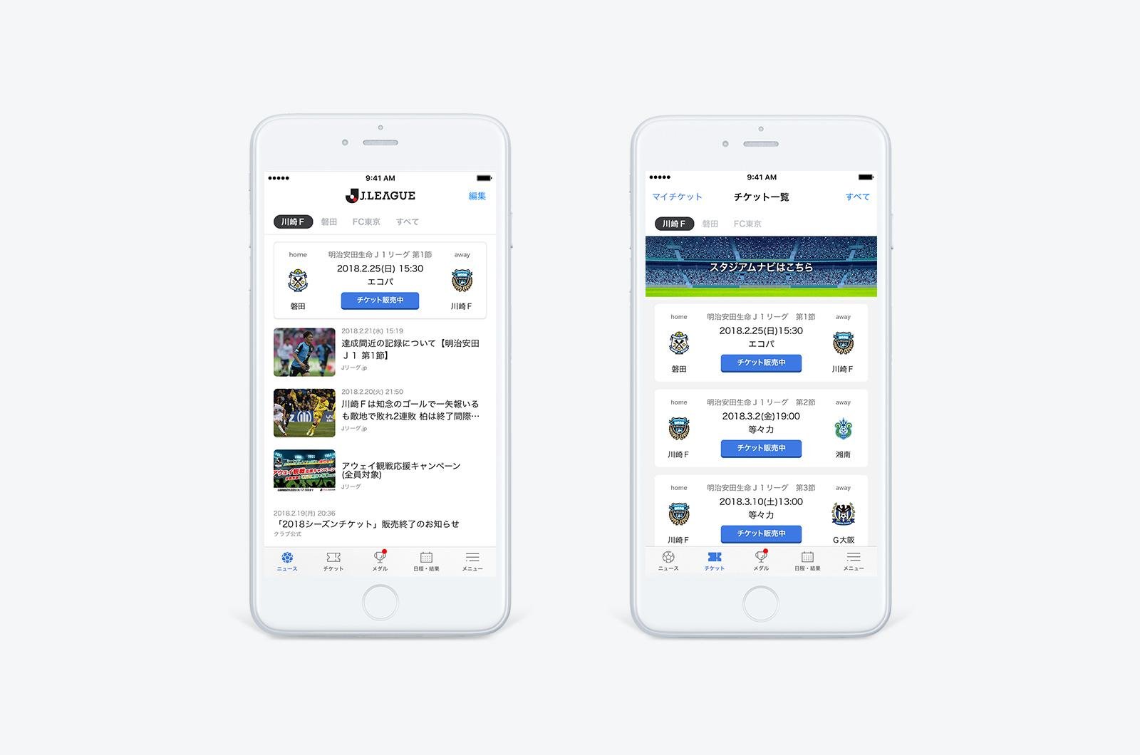 また、Jリーグ全試合のチケットをアプリ内から購入することが可能です。購入済みチケットの確認も簡単に行うことができます。