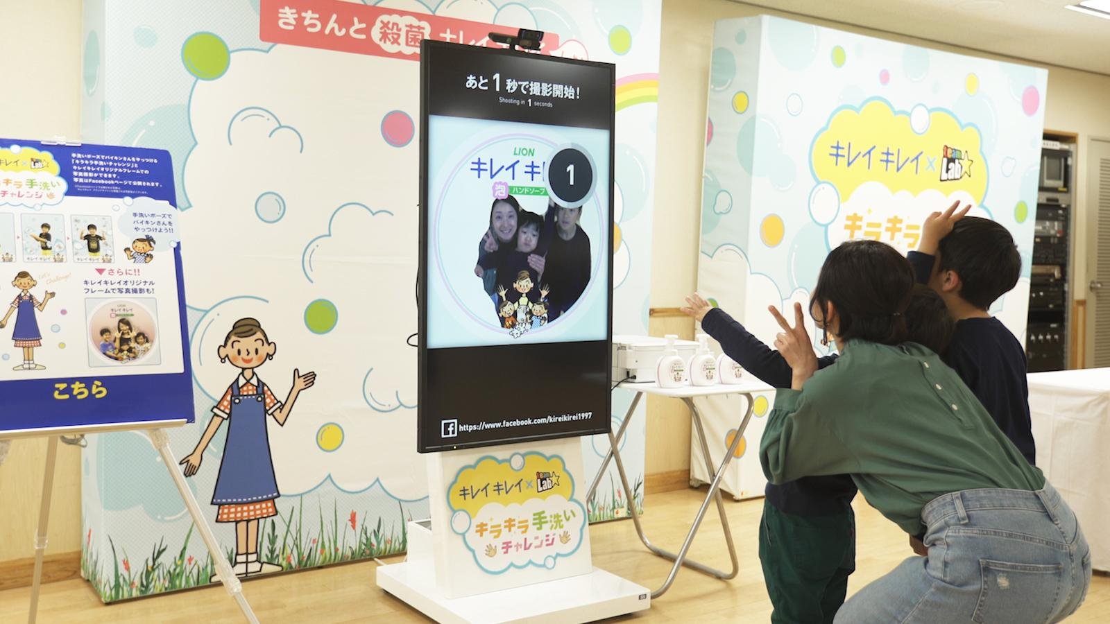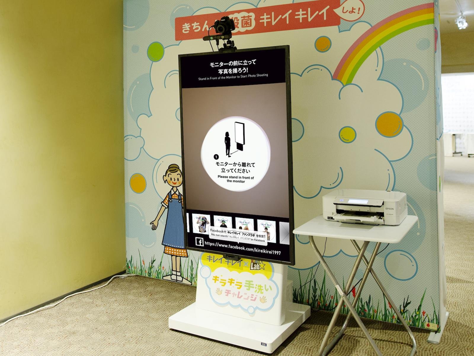 「チームラボ 学ぶ!未来の遊園地と、花と共に生きる動物達」(広島NTTクレドホール)に併設されるキレイキレイブースにてチームラボカメラを展示。