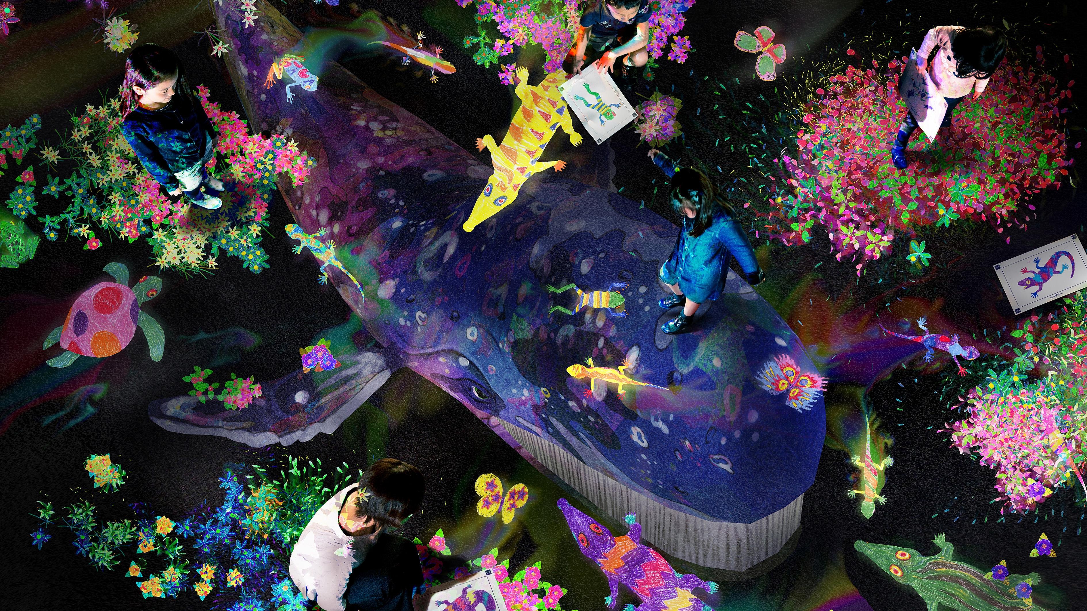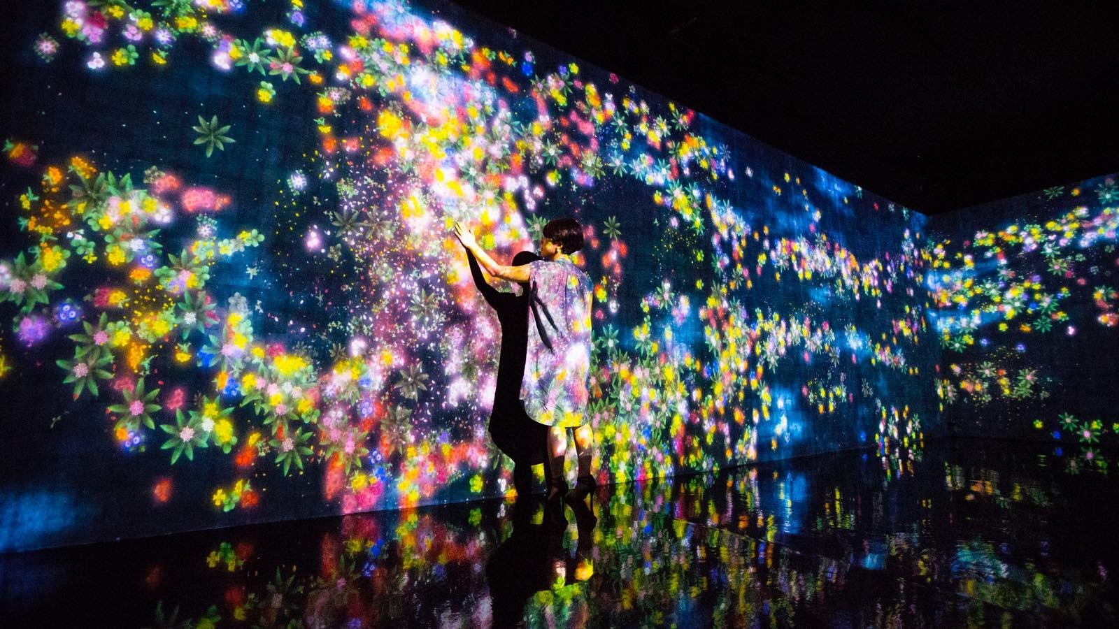 チームラボ、空港型市中免税店「Japan Duty Free GINZA」(銀座三越店8F)に、「花と人 五曲一双 - Gold and Dark」を展示。2016/6/1(水)〜7/31(日)