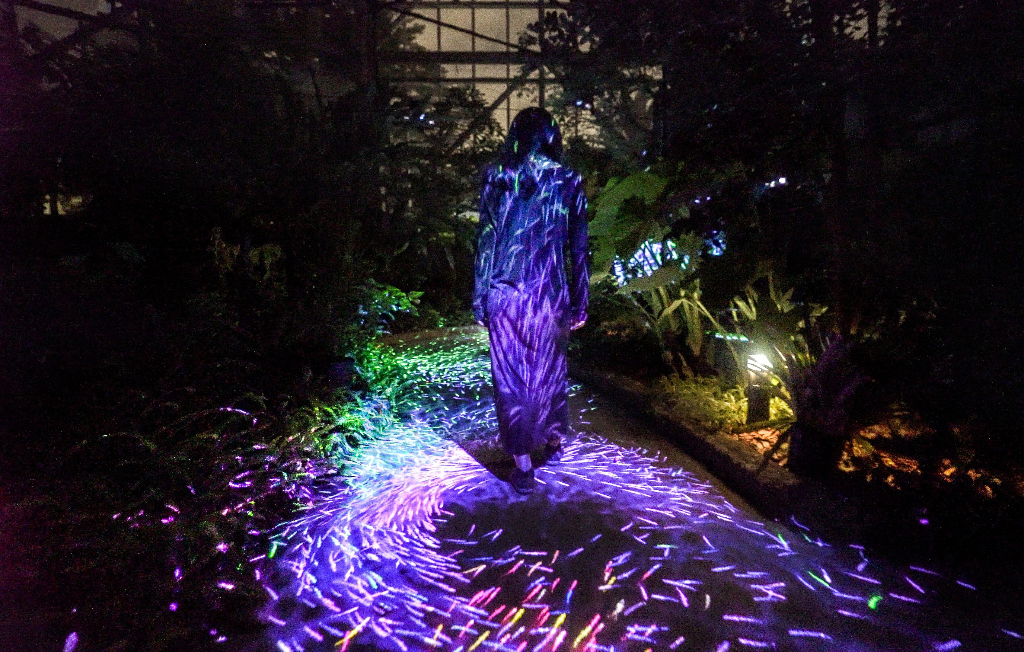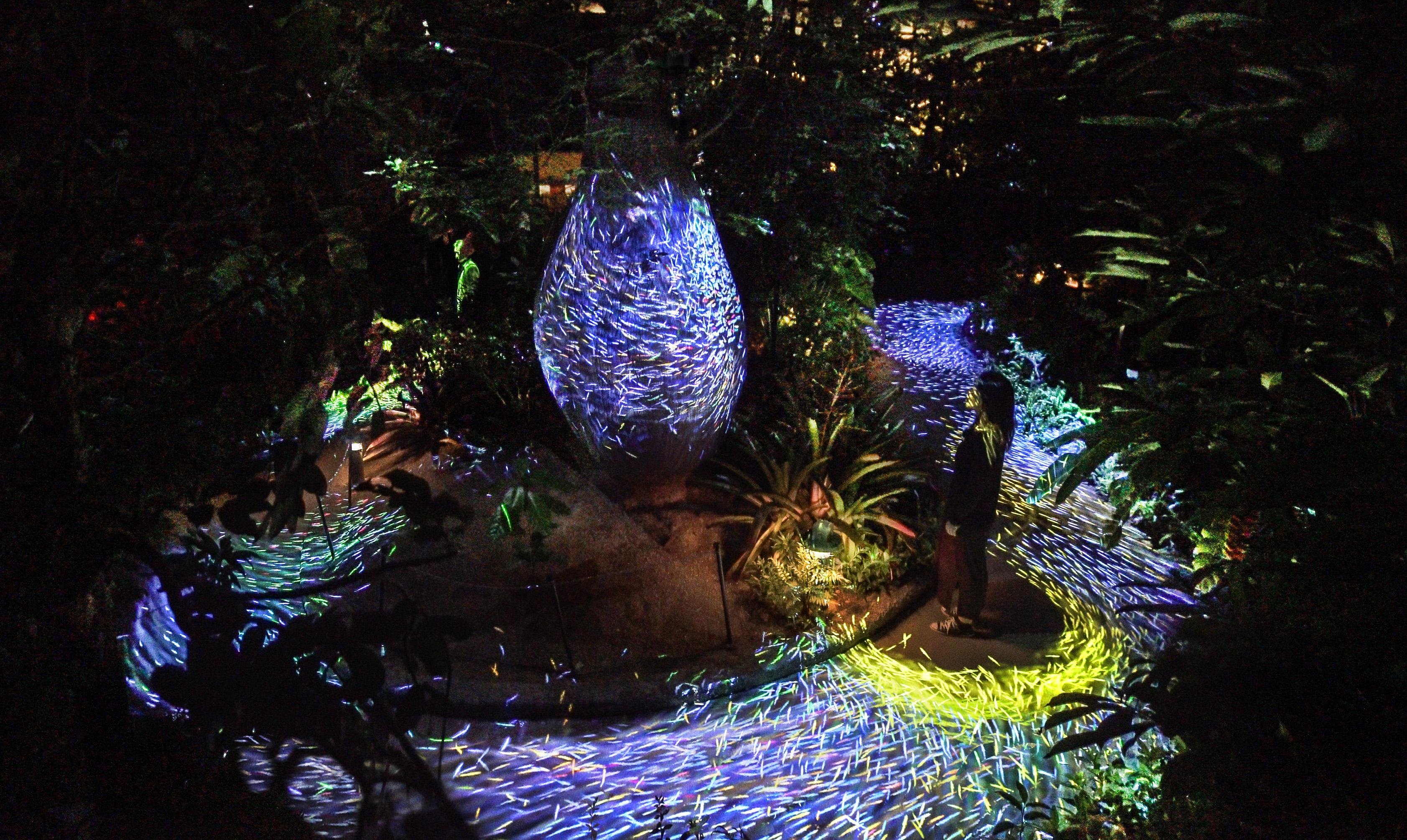 植物館の珍しい植物が光り輝く。植物の光は、それぞれ自律しており、ゆっくりと呼吸するかのように明滅している。