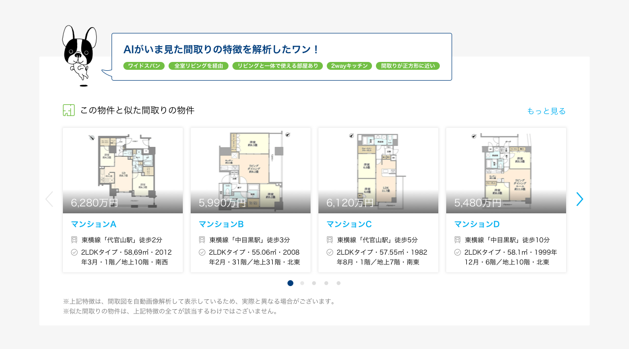 (2)AIが東急リバブル 公式サイト内の全物件の中から類似した間取りの物件を抽出して紹介