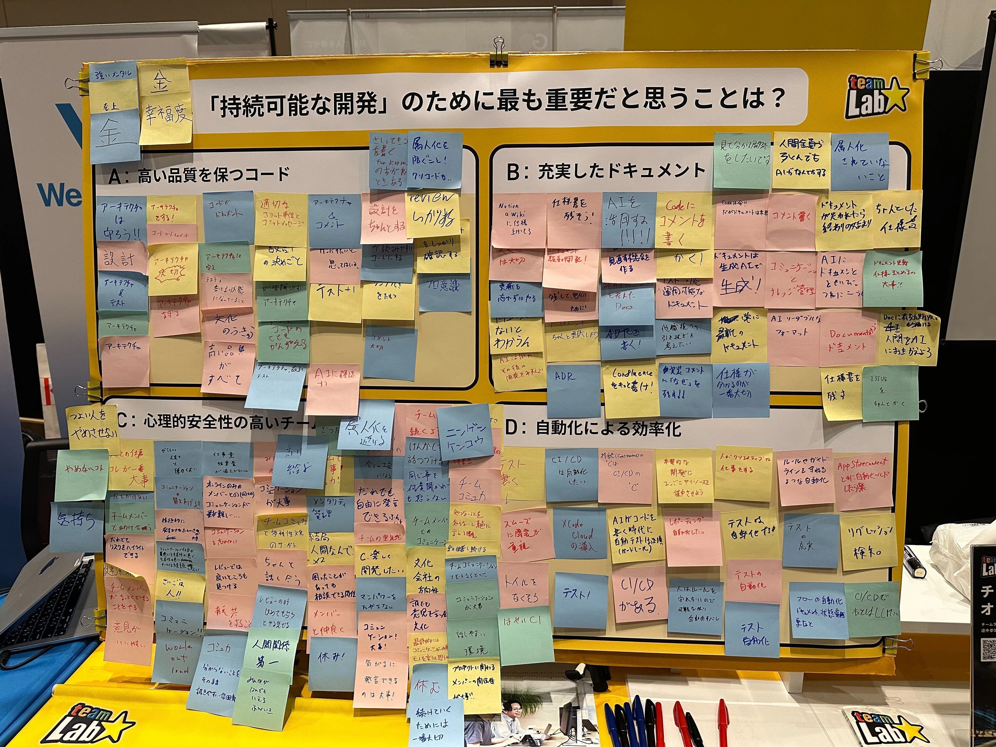 開発体験が変わる世の中でも心理的安全性の高いチームが一番多いことに驚きました!それに反して、人間がいなくても開発ができる世界線もくるため、ドキュメントが重要という意見も聞こえ、時代を感じました!また、自動化による効率化でEditor MCPが流行るという方もいていろんな視点をいただけました!