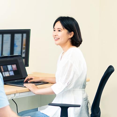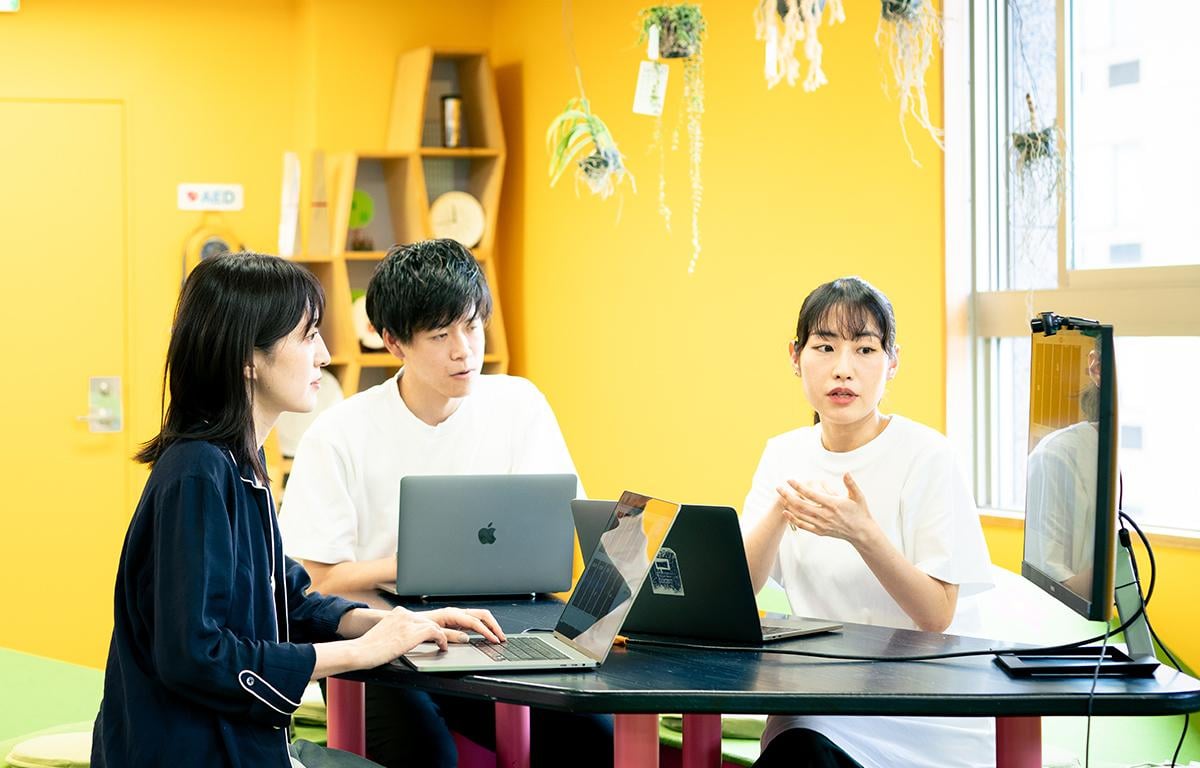 各専門チームに分かれて、UI/UXデザインや、自社のアート作品の制作を行います。チームメンバーと意見を出し合いながら、課題や実業務の制作、ブラッシュアップを行っていきます。