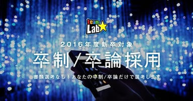 卒業制作や、卒業論文に夢中になって、就職活動を思うようにできなかった…チームラボでは、そんな学生の方を対象にに学生時代の研究・制作の成果で選考する、「卒制/卒論採用」を行っています。自己PRや、履歴書ではなく、あなたの作った「もの」で評価されたい、チ...