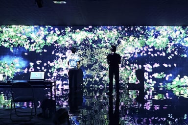 インタラクティブに反応するアート作品(リアルタイムCG)の設計と開発をしています。