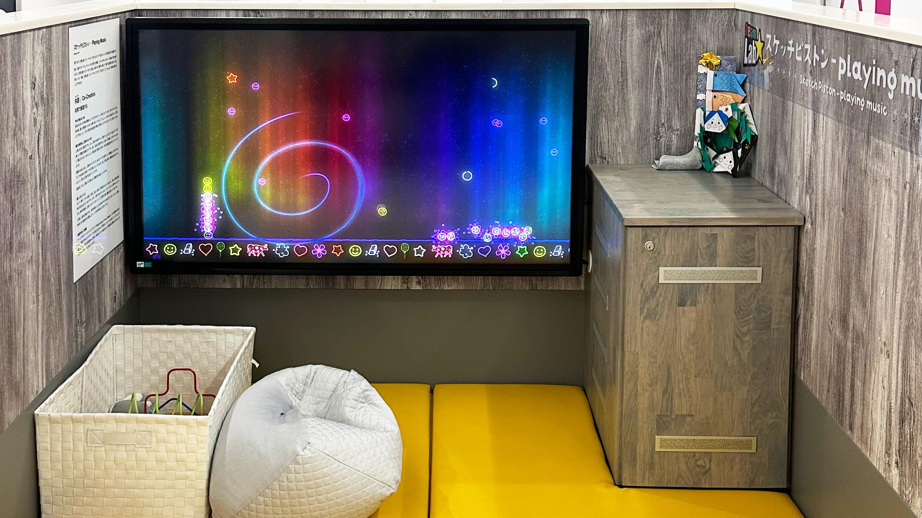 タッチディスプレイを壁に設置するだけで、創造的な遊びの場が創出され、楽しみながら過ごすことのできる場をつくることができます。