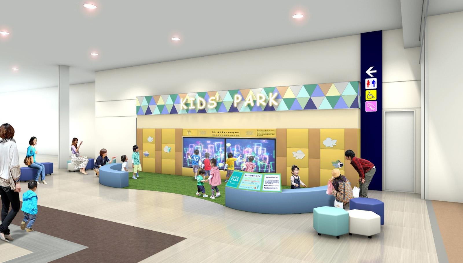 タッチディスプレイを壁に設置すれば、そこに創造的な場ができます。カフェやフードコートの壁を利用して設置すれば、子供たちは、タッチディスプレイに向かって創造的な遊びに夢中になり、大人は子供の遊ぶ姿を見ながらゆっくり休憩のとれる場をつくることができます。