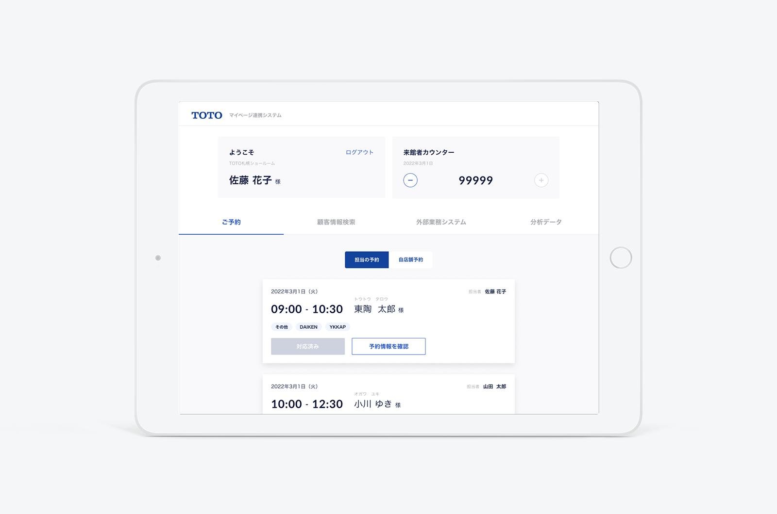 全国約100店舗のショールームで接客スタッフが使用するタブレット向けの接客支援ツールを構築。マイページと連携することで、ご訪問されるお客様の情報や嗜好を事前に把握し、よりパーソナライズされた上質な体験へと変えています。
